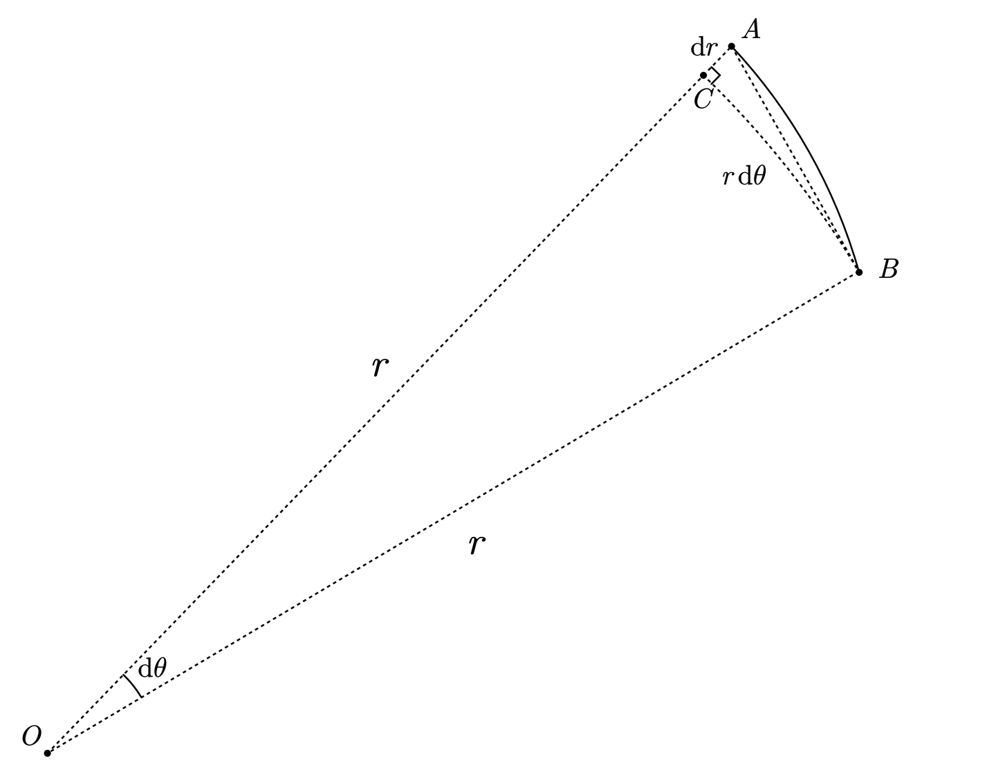 极坐标下的弧长微元本身有一个更直观的几何形式:。它是由径向变化 和切向变化 构成的微小直角三角形得出的。