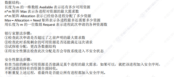 - 死锁避免:用某种方法防止系统进入不安全状态,从而避免死锁