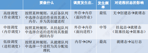 - 作业调度:多道批处理系统中,有新的作业放入内存时,会为其建立一个新的进程