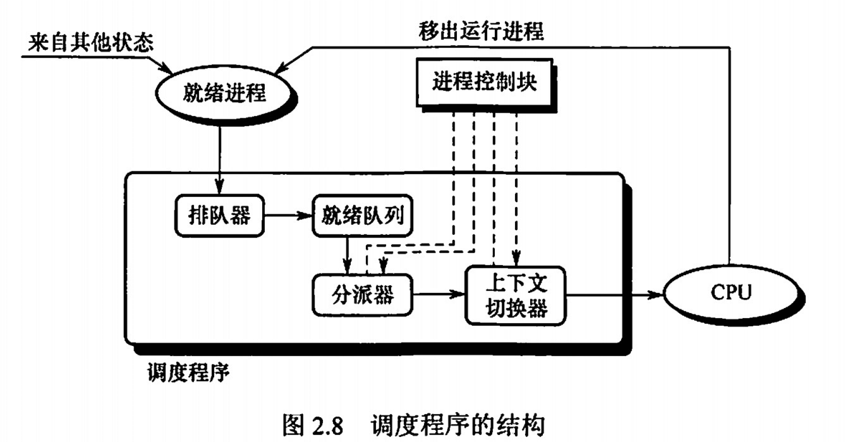 - 可剥夺的 OS 中,当有更高优先级的进程就绪时,调度程序将正在执行的进程转换为就绪态