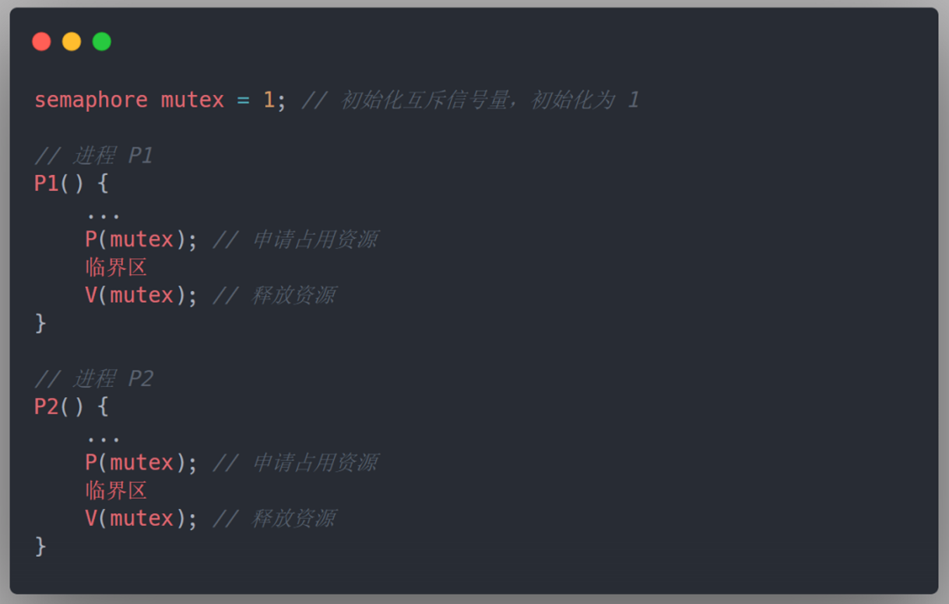 - 每次仅允许一个进程在管程内执行某个内部过程,从而实现互斥【编译器实现该特性】