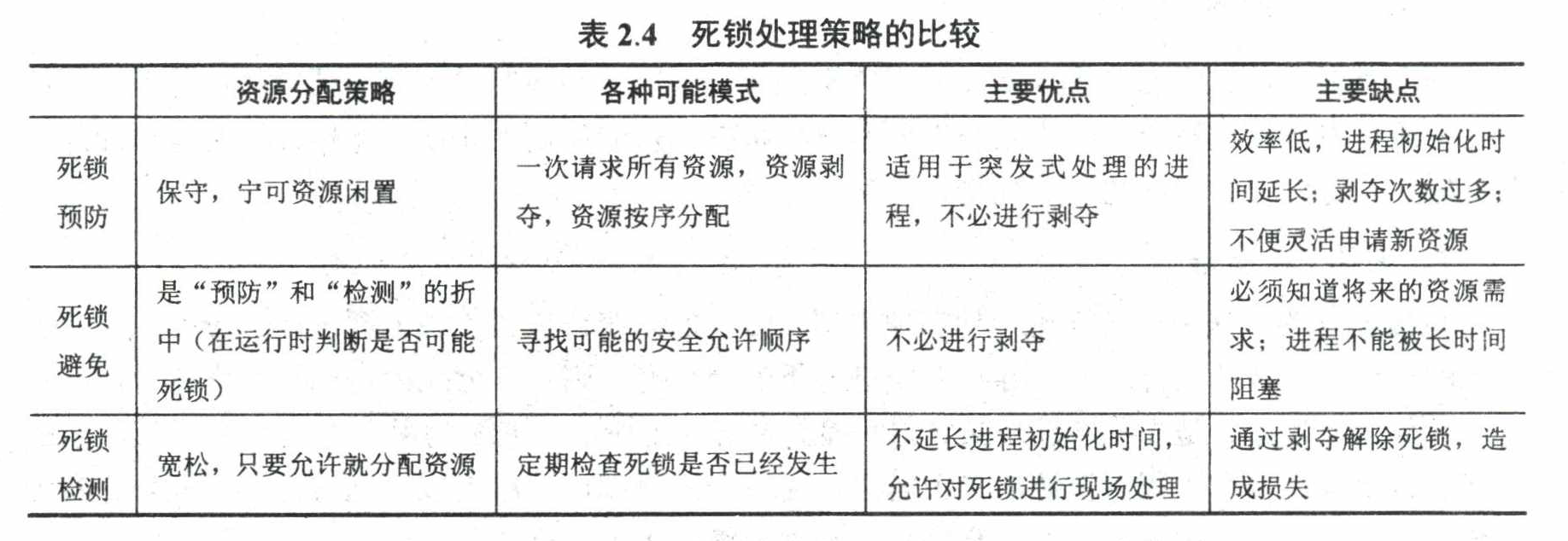 - 释放已获得的资源可能造成前一阶段工作的失效。因此这种方法一般只适用于易保存和恢复状态的资源,如 CPU