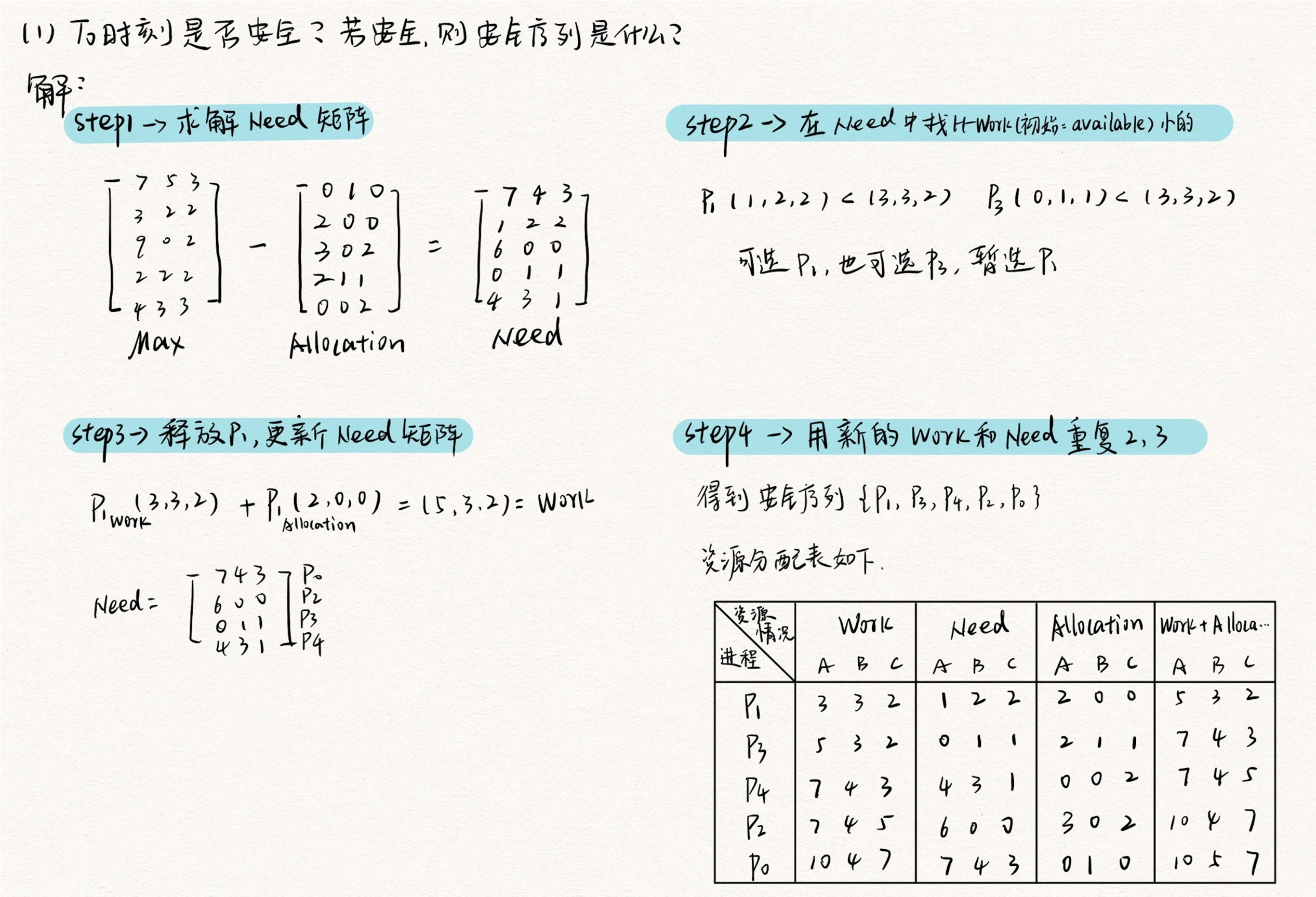 - 只要能找出一个安全序列,系统就是安全状态