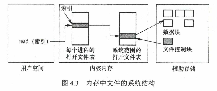 - 文件被打开时,将磁盘索引节点复制到内存的索引节点,便于以后使用