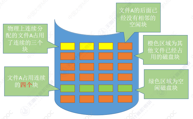 - 同样可采用首次适应、最佳适应、最坏适应等算法来决定要为文件分配哪个区间