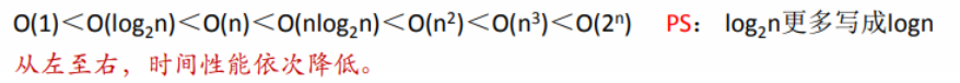 • 常用的时间复杂度大小关系: