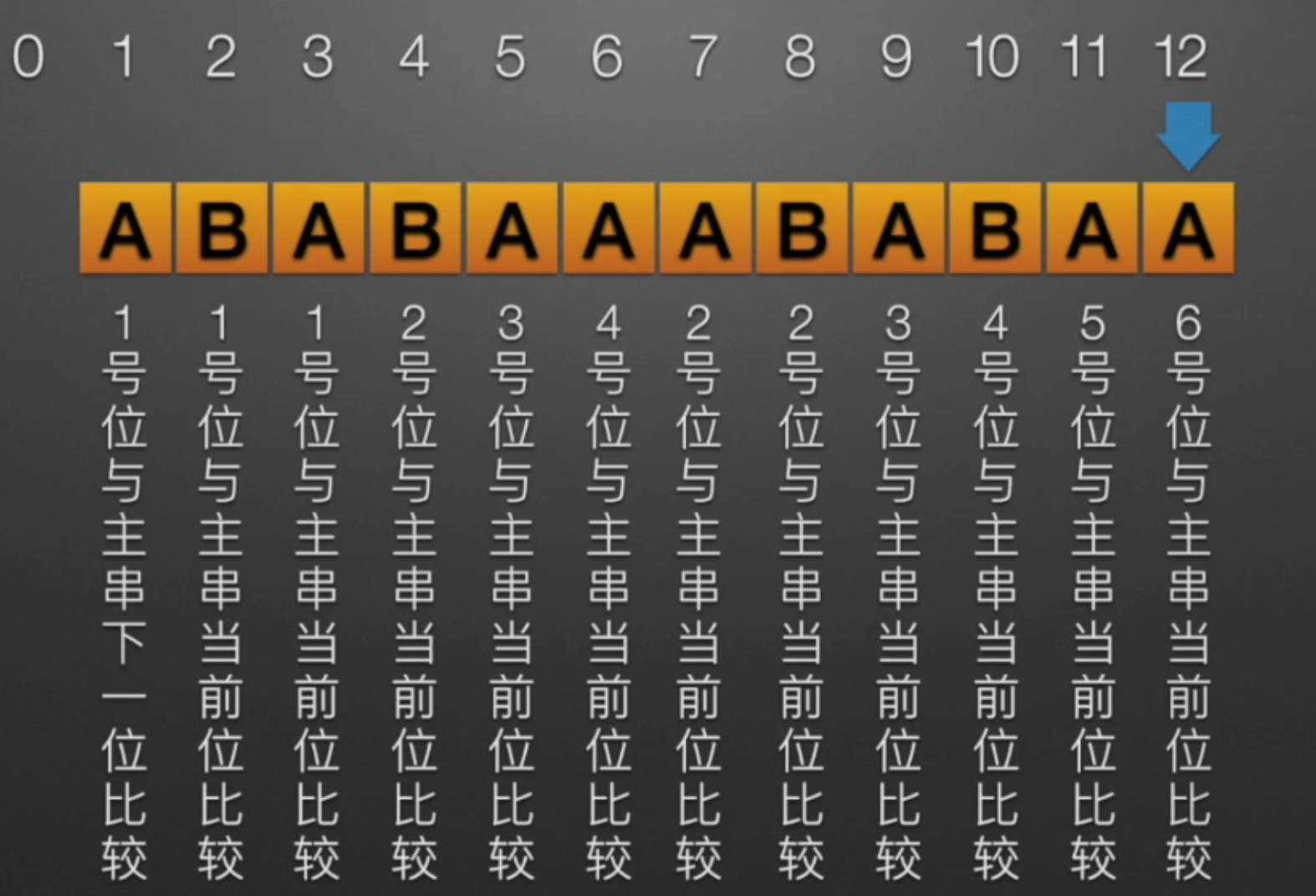 next数组反映模式串的自身匹配特性- KMP 算法的核心是避免主串指针回退