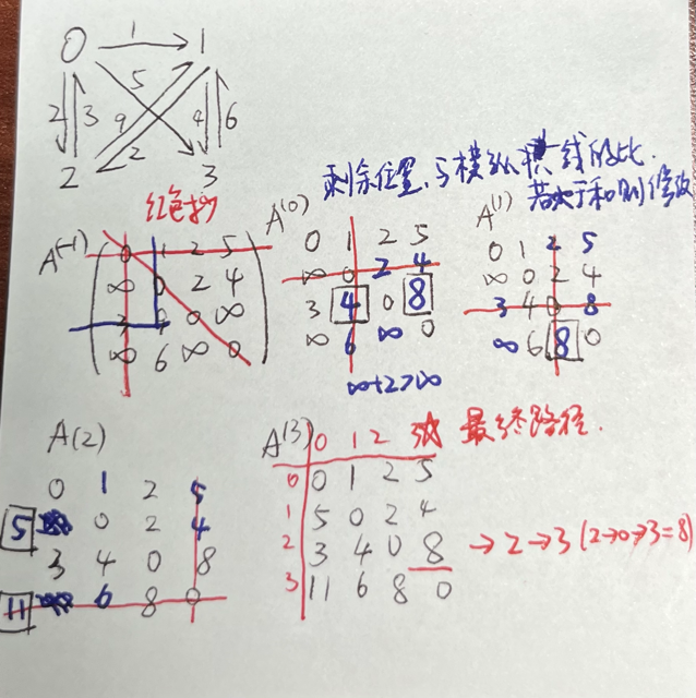 dist[i][j]:存储从顶点i到顶点j的最短距离。path[i][j]:存储从i到j的最短路径上,经过的第一个中间顶点(用于路径还原)。