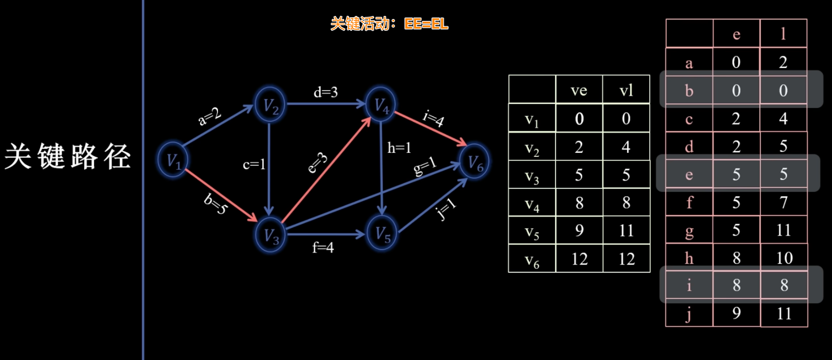 - 计算活动最早/最晚开始时间并判断关键活动: