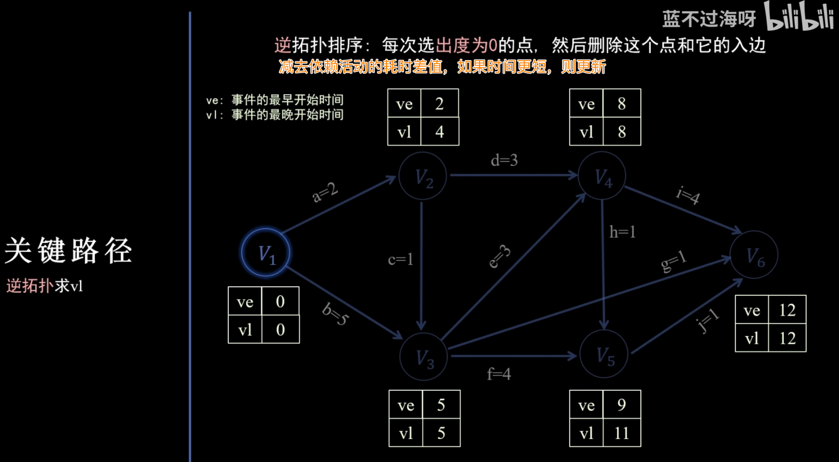 - 活动最晚开始时间 ( / ):活动在不延迟整个项目工期的情况下,能够开始的最晚时刻。等于其终点的 减去活动持续时间。