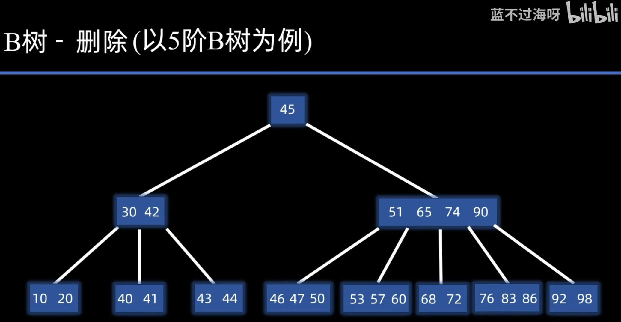 删除操作比插入复杂,因为它可能需要合并 (Merge) 或 借用 (Borrow) 关键字来维持 B 树的性质。
