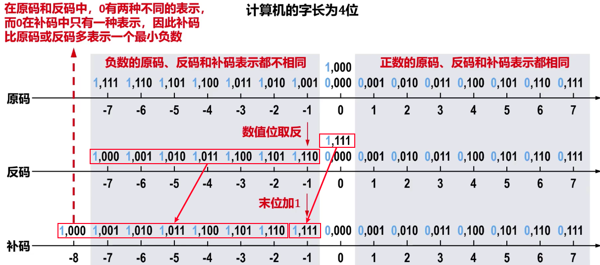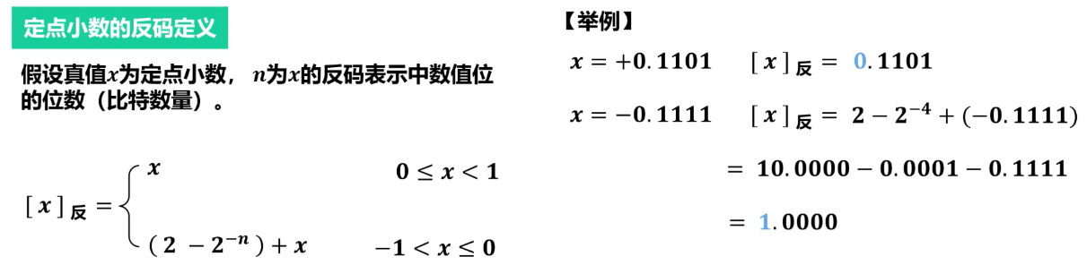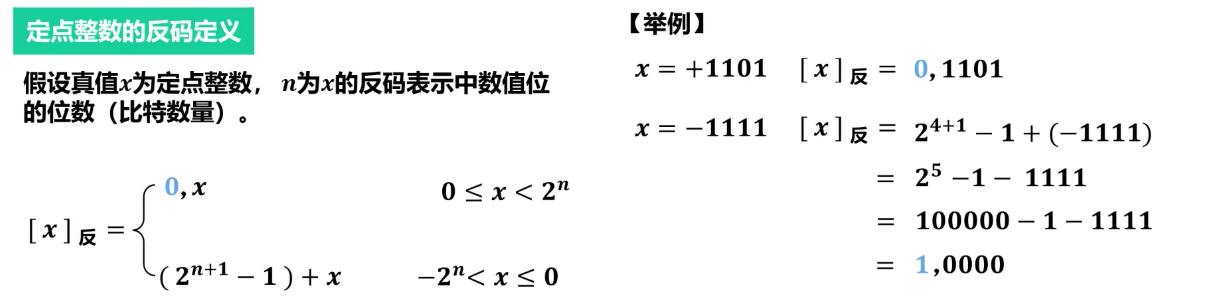 - 负数的反码是其原码的符号位不变,其余数值位取反。