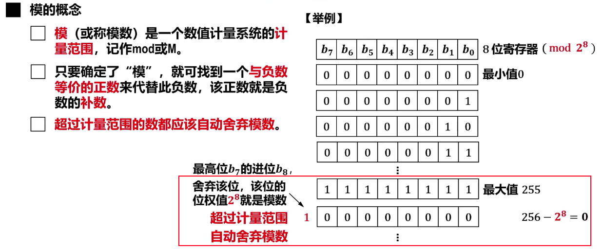 - 一个正数和一个负数互为补数时,他们的绝对值之和即为模数