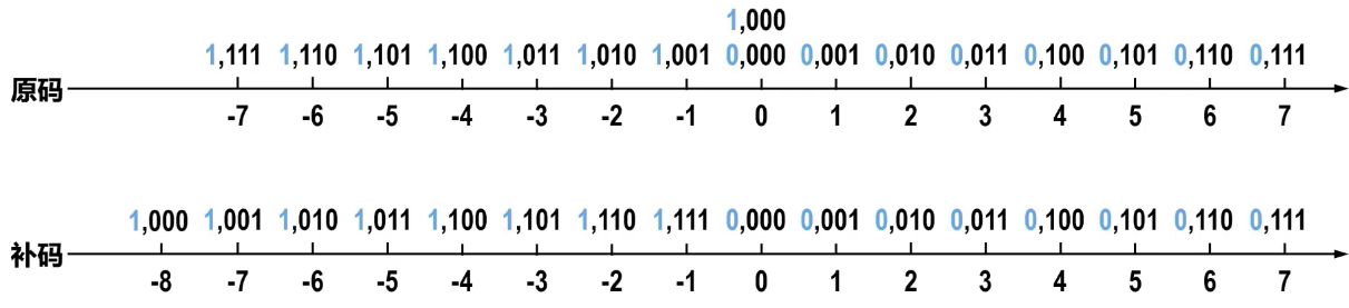 - 比原码多表示一个最小负数(例如,8 位补码可表示 -128,而原码和反码只能到 -127)。