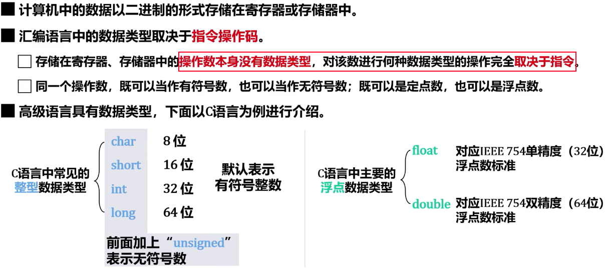 - 操作数本身没有数据类型,数据类型取决于指令
