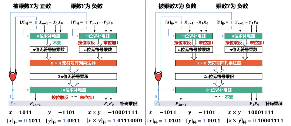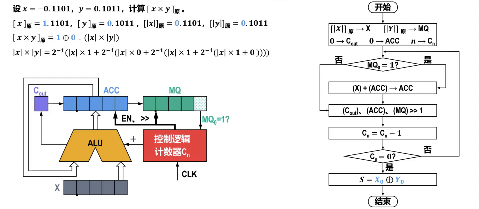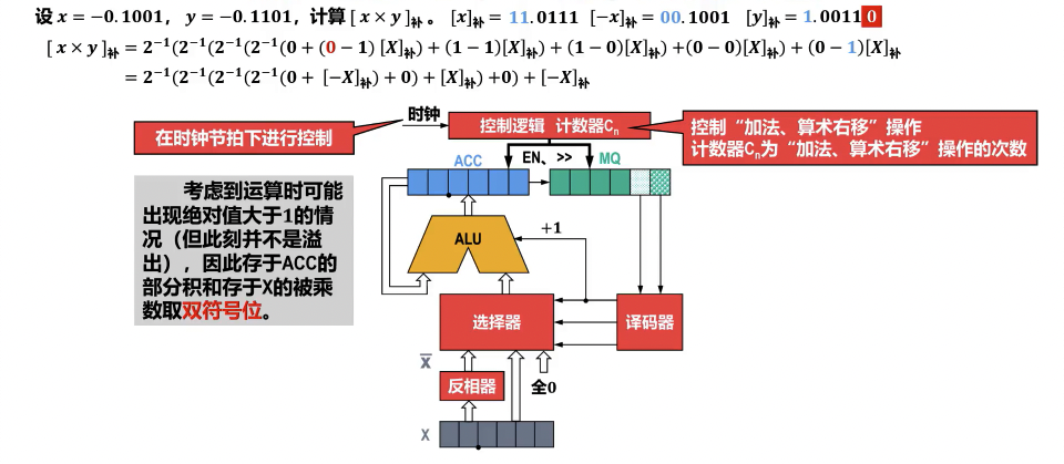 - 双符号位:计算 时,被乘数 、乘数 以及中间结果(部分积)都需采用双符号位表示,以便在运算过程中判断溢出和确定最终结果的符号。