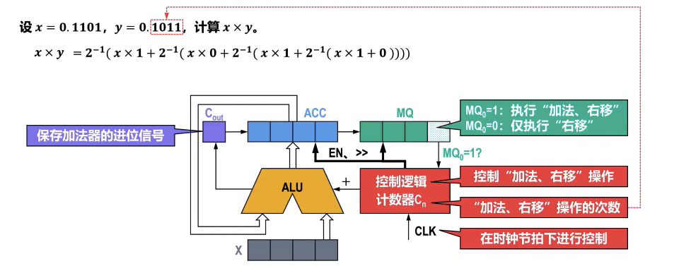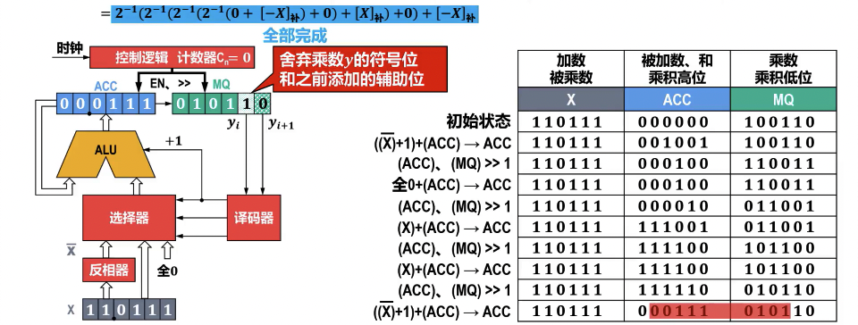 - 原乘数为 4 位,MQ 扩展到 6 位,迭代进行 n 次。则第 5 位为符号位,需舍去。