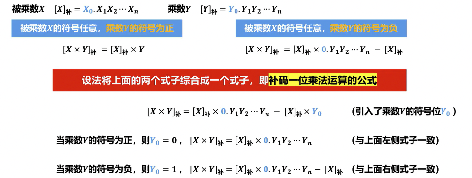 - 操作数表示:被乘数 和乘数 均需转换为补码形式 和 。