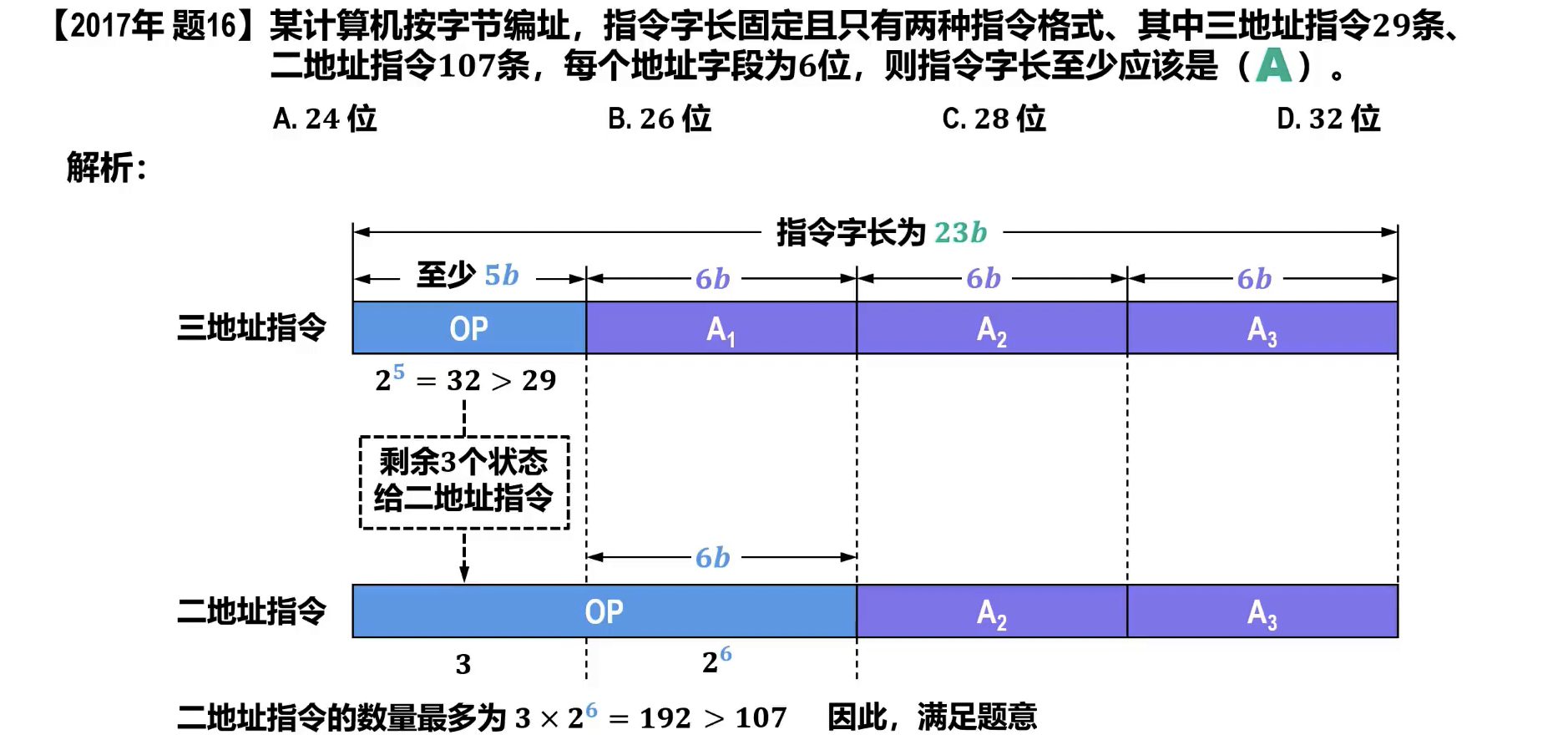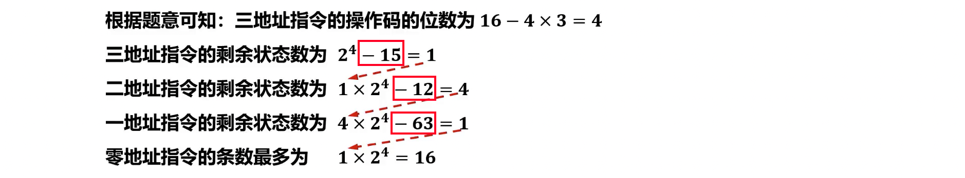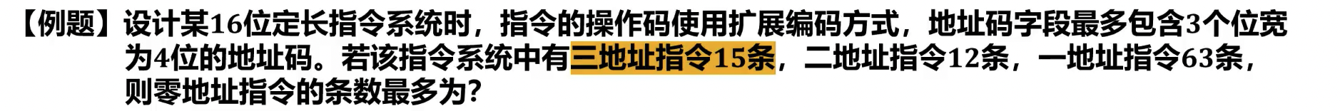 - 二地址指令的操作码只能使用三地址指令不用的剩余状态
