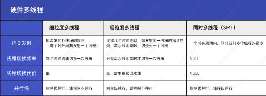• 该方式下,处理器能在每个时钟周期切换线程