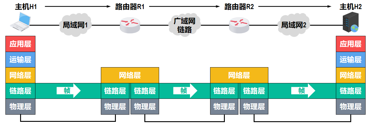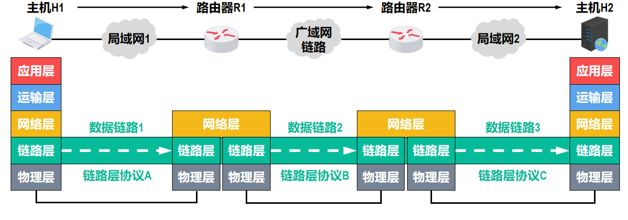 - 把实现控制数据传输的通信协议的硬件和软件加到链路上