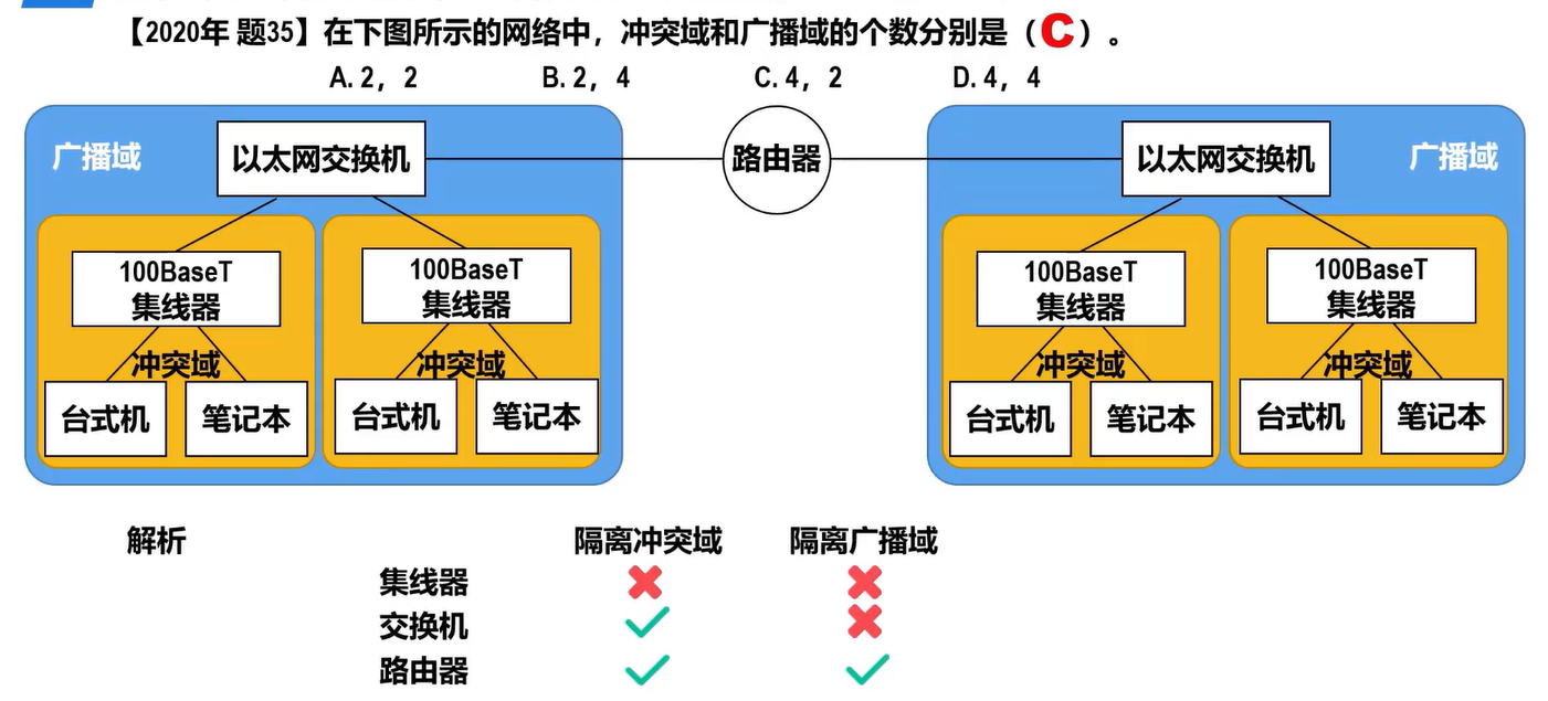 - 共享式以太网,集线器只工作在物理层: