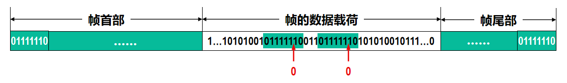 - 接收方处理:对帧的数据载荷进行扫描,每出现5 个连续的比特 1时,就把其后的一个比特 0 删除