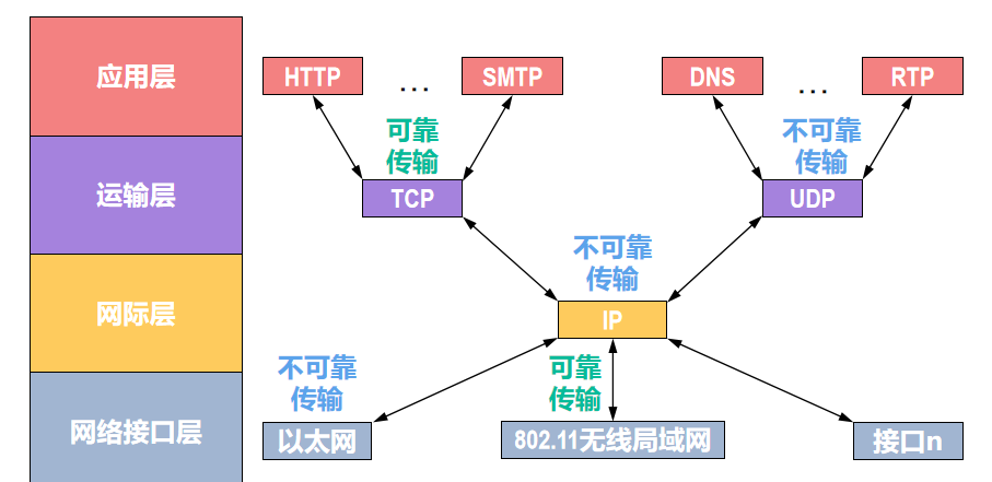 - 数据传输的可靠性由高层负责