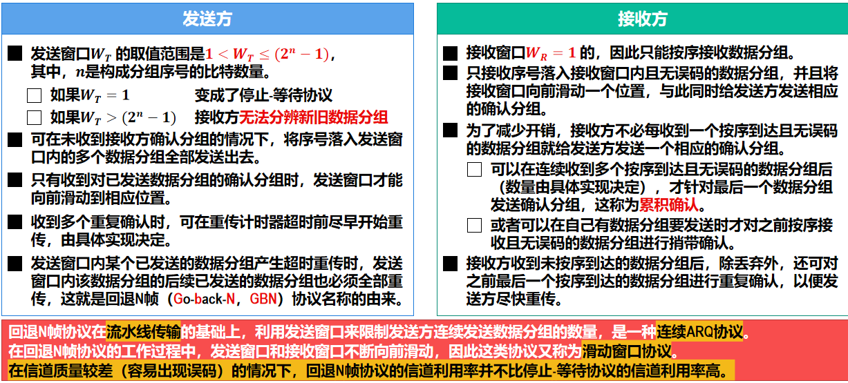 - 不可靠传输服务:收到有误码的帧,直接丢弃,其他什么也不做;未收到发送方发送的帧,也不进行任何处理