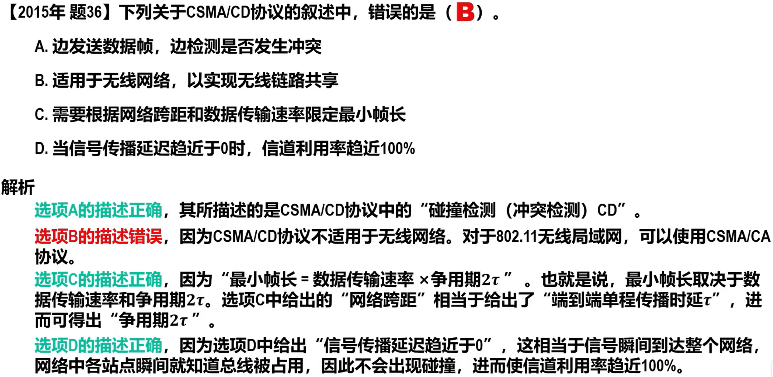 - 无线局域网使用 CSMA/CA 协议