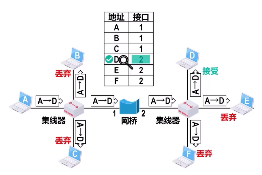 网桥转发和丢弃帧: