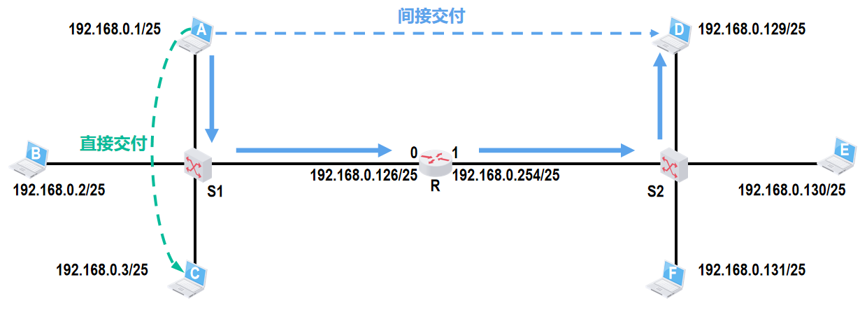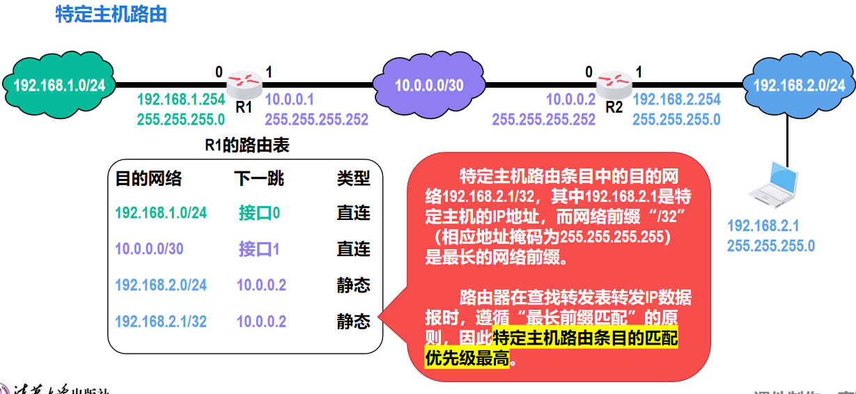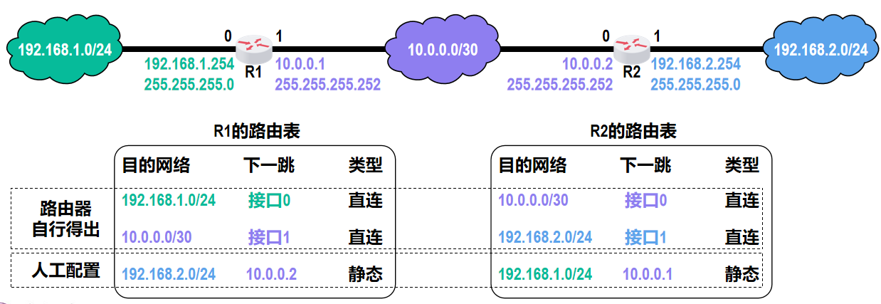 - 路由表中“直接”(或“直连”)表示目的网络与路由器的某个接口直接相连,无需经过其他中间路由器转发,数据可通过该本地接口直接送达目的网络。