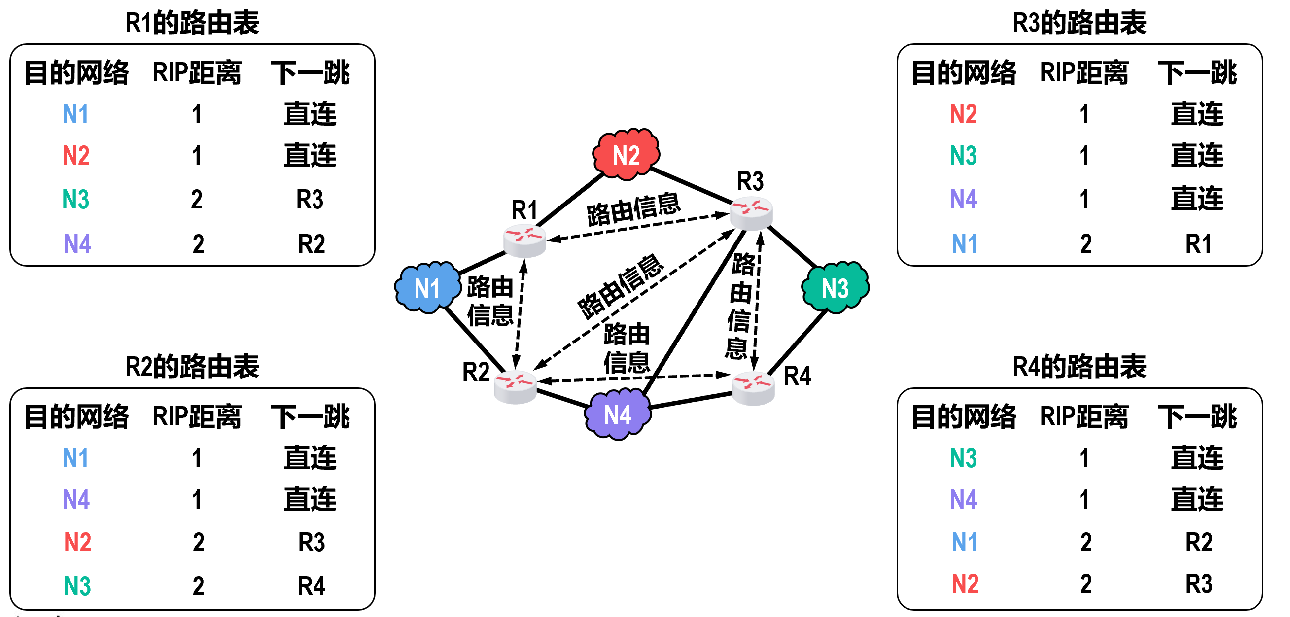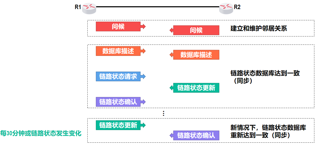 - 同时经常或定期地和相邻路由器交换路由信息更新和维护路由表