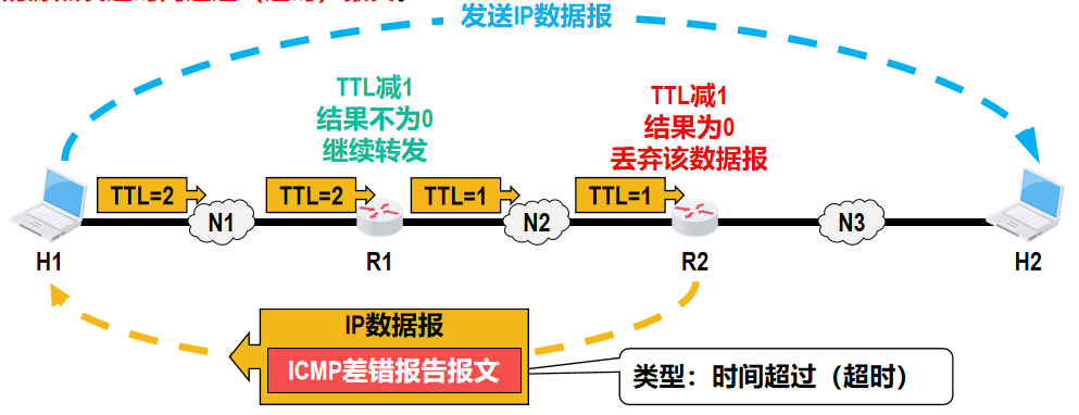 - 主要任务:将分组从源主机经过多个网络和多段链路传输到目的主机【分组转发和路由选择】